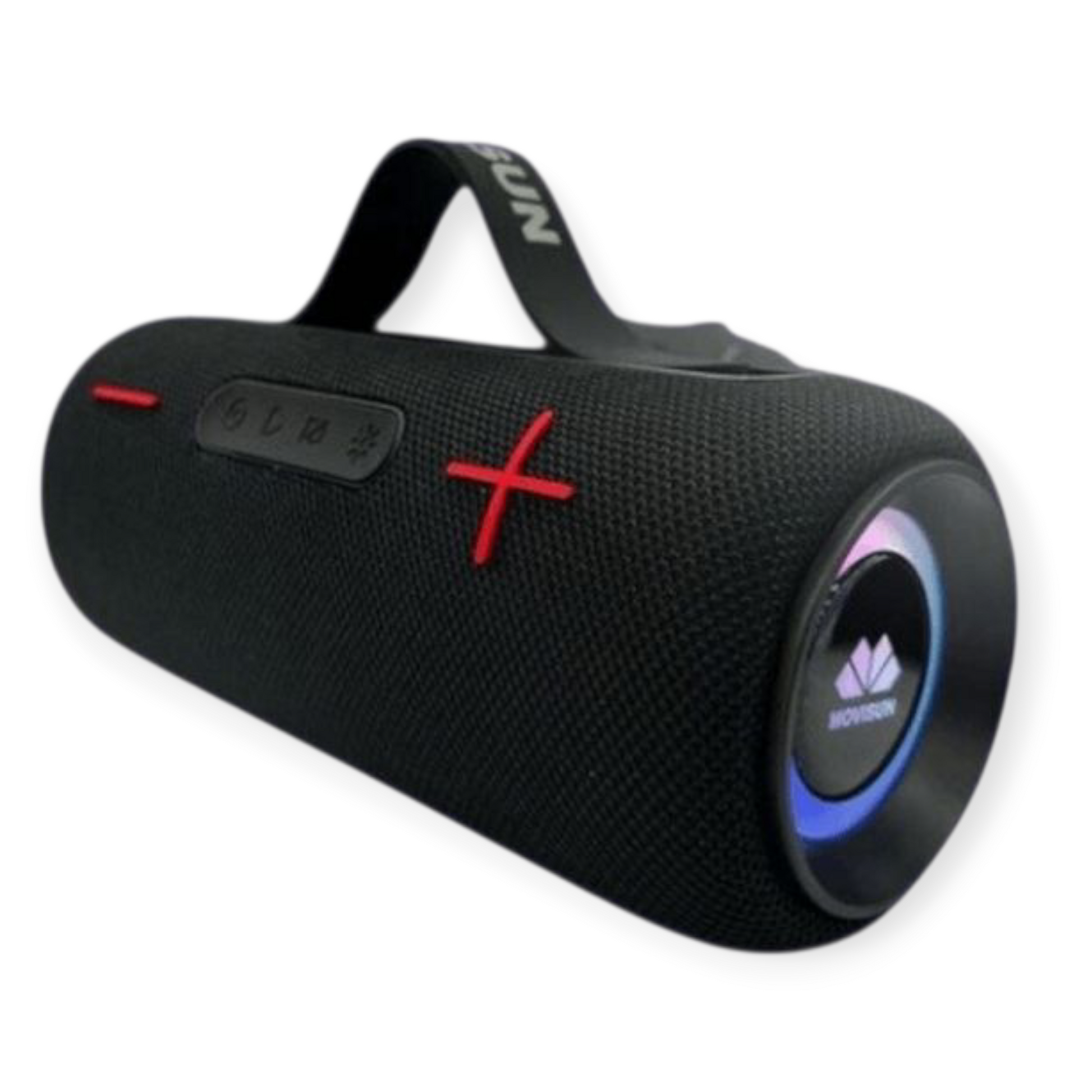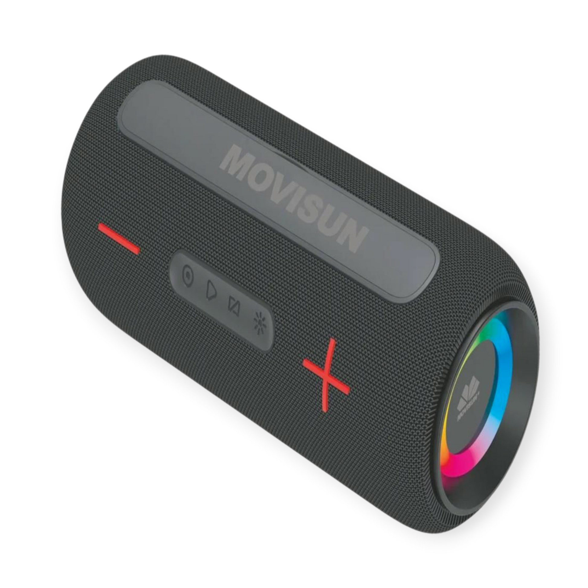 Esta bocina Drum Movisun ofrece una duración de 2 a 6 horas de uso continuo. Con una conexión para 2 altavoces, puedes amplificar tu música en cualquier lugar. Además, cuenta con protección IPX5 contra salpicaduras y una iluminación de luz RGB de 360 grados para una experiencia auditiva inmersiva.